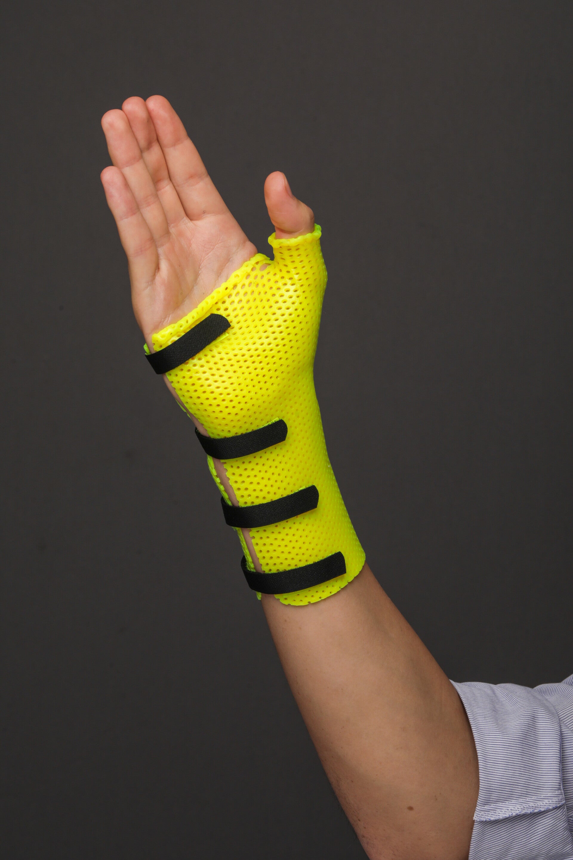 The adhering-when-heated formulation allows the thermoplastic to lightly grip the patient’s skin during molding, enabling more refined contouring and optimal splint formation.